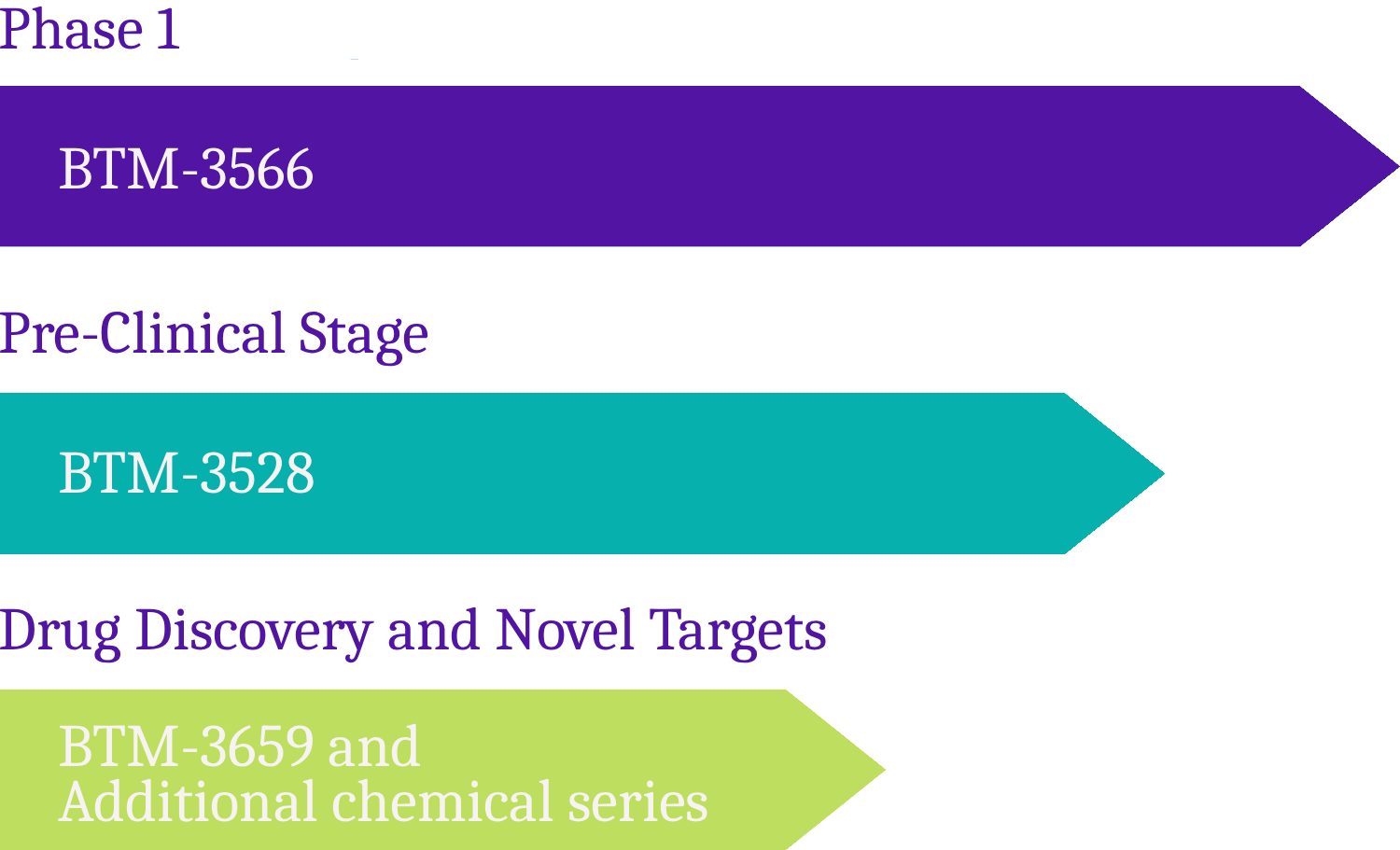 Our strategy will enable us to develop a pipeline of future indications in selected solid and hematological tumors, opening the doors to new compounds and patient populations experiencing severe unmet need. We are currently progressing another potential candidate, BTM-3528, through our development pipeline.